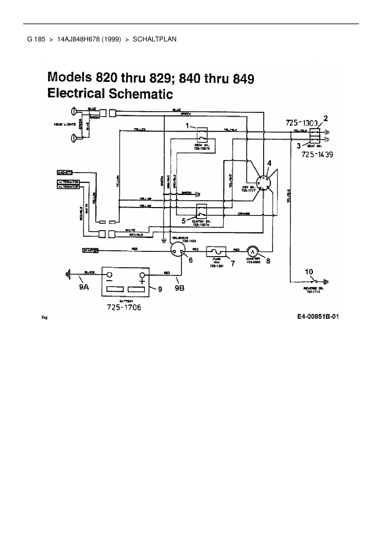 Ersatzteile für Gartentraktor MTD G 185 aus der Zeichnung Schaltplan: