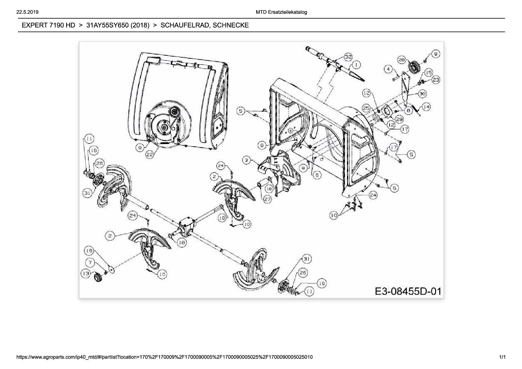 Download Ersatzteil-Zeichnung Wolf-Garten Expert EXPERT 7190 HD Zeichnung Schaufelrad, Schnecke (PDF-Format)