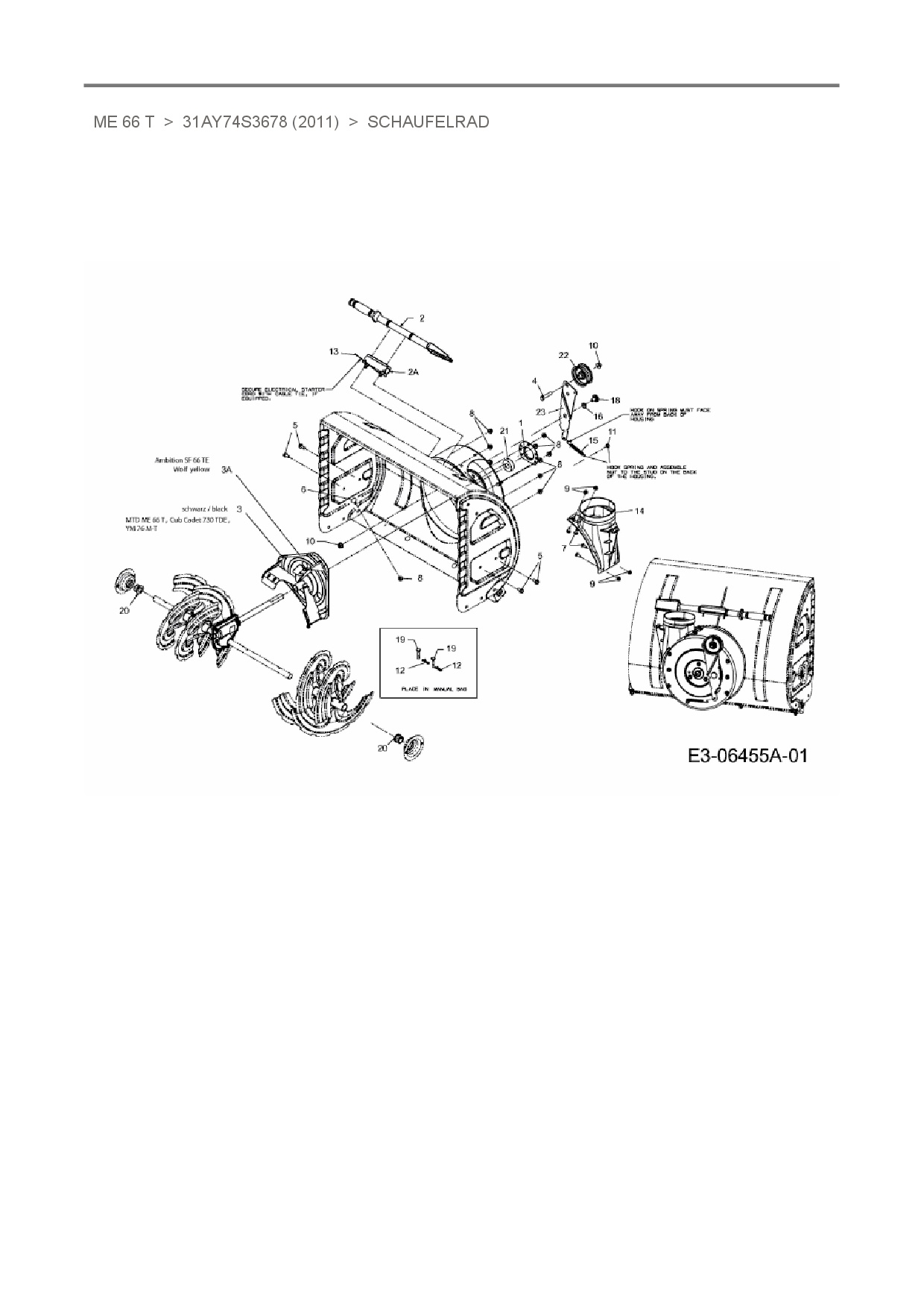 Zeichnung für MTD Schneefräse ME 66 T mit der Geräte-Artikelnr. 31AY74S3678 ab Baujahr 2011:
