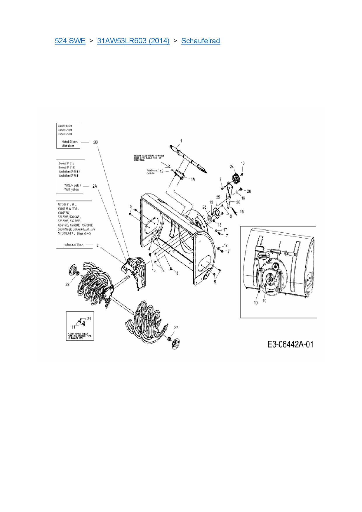 Ersatzteile für Schneefräse Cub Cadet 524 SWE aus der Zeichnung Schaufelrad: