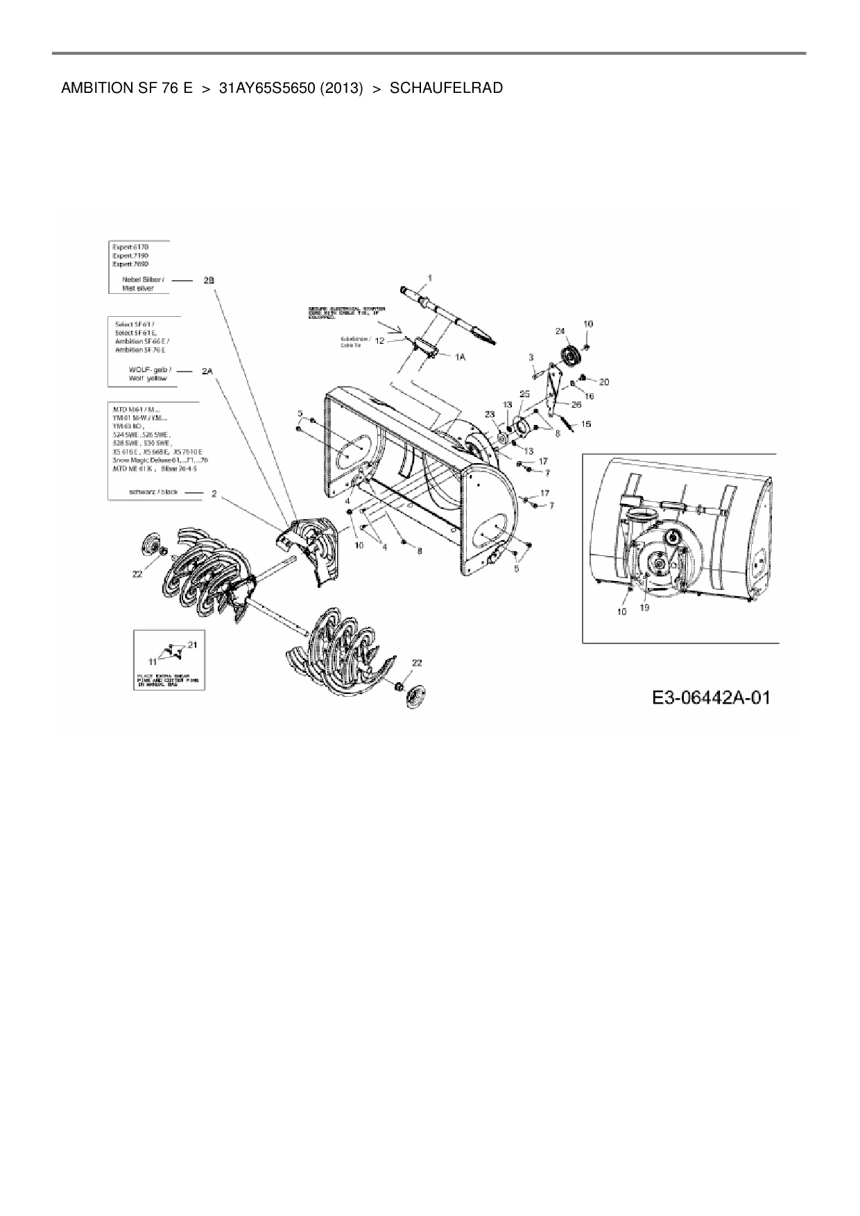 Die Ersatzteil-Zeichnung für Schneefräse Wolf-Garten Ambition SF 76 E als Download: