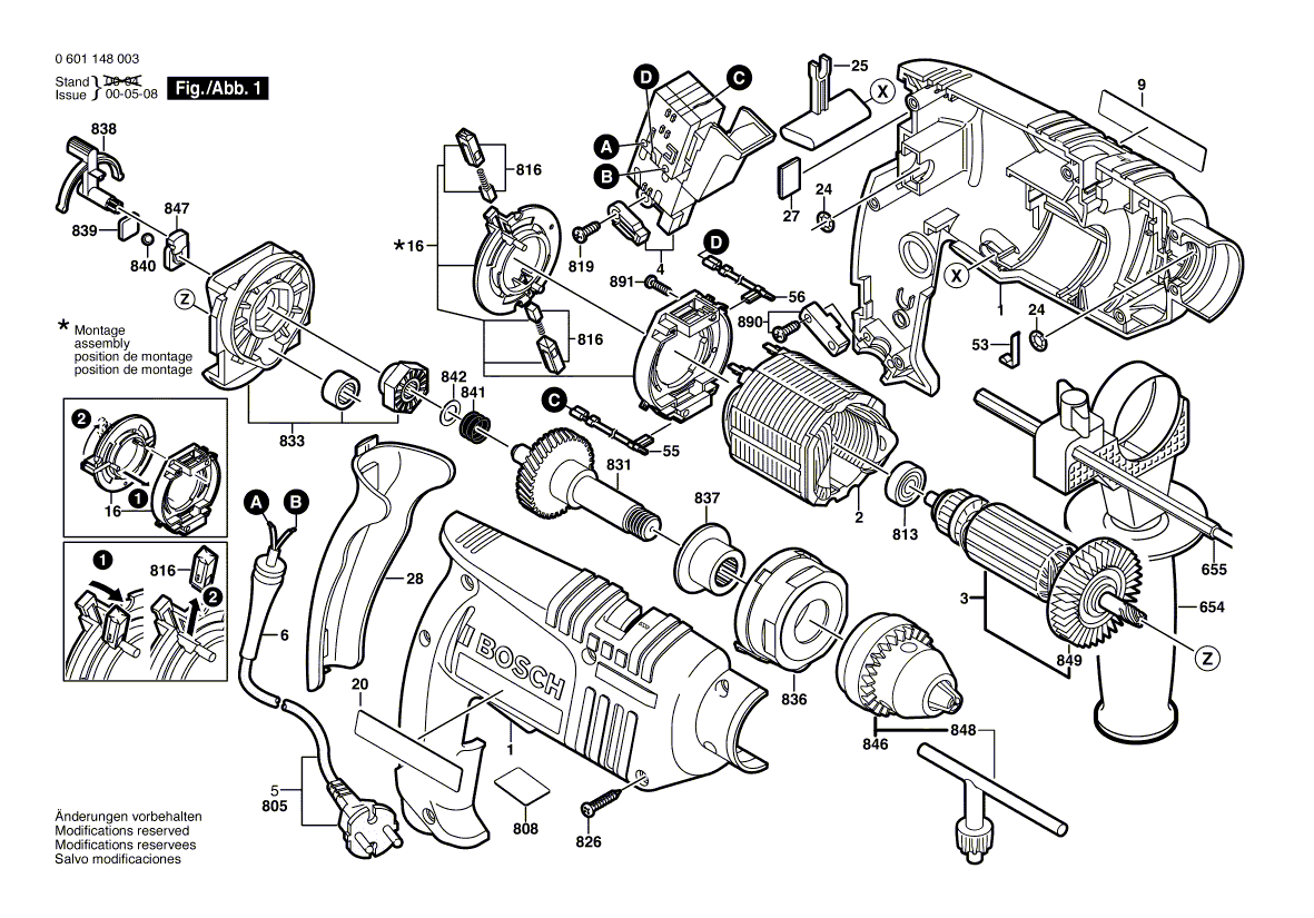 Zeichnungen von Bosch Schlagbohrmaschine GSB 16 mit der Geräte-Artikelnummer 0 601 148 003