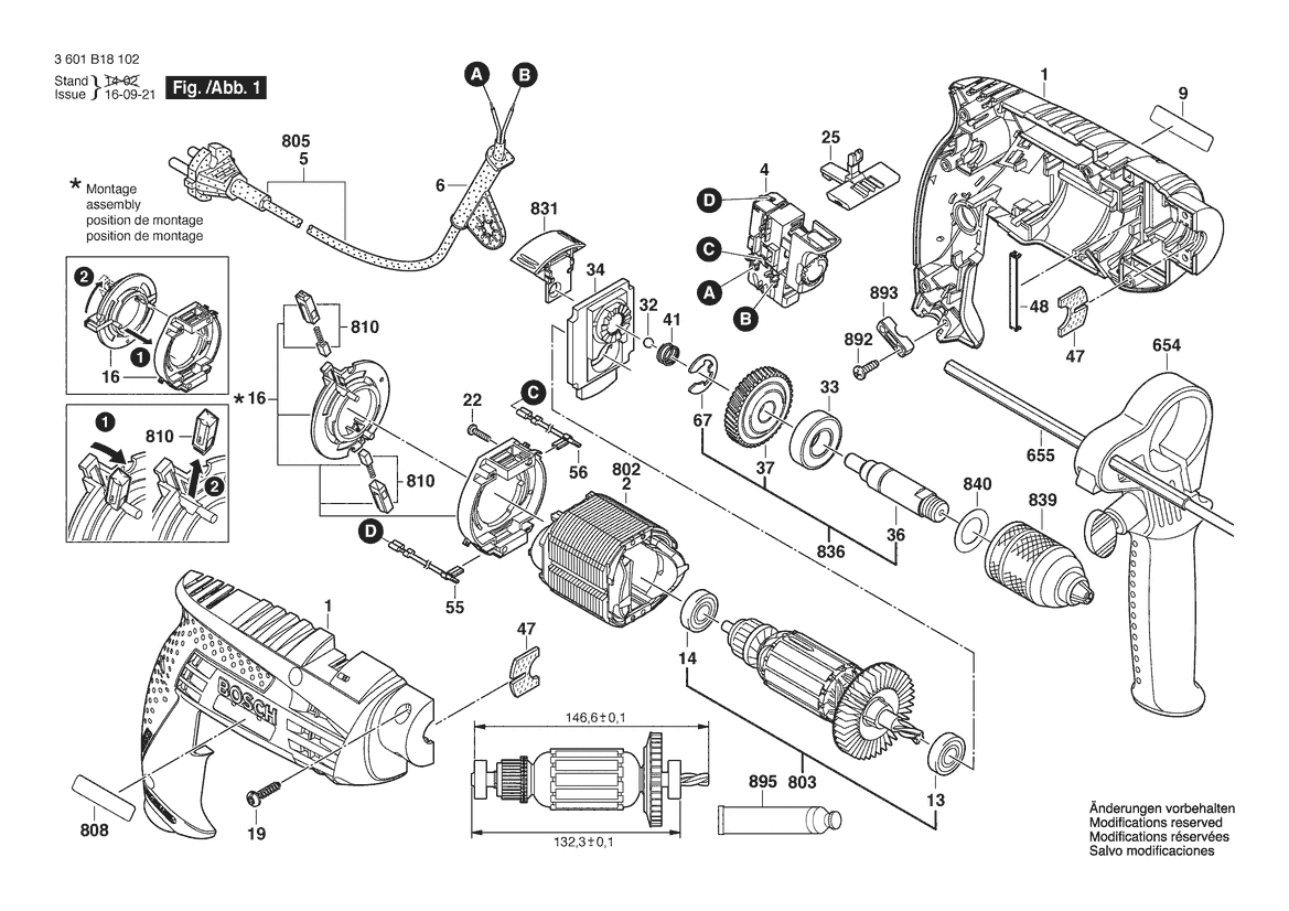 Zeichnung Sollten Sie Fragen zu einem Ersatzteil vom Bosch Schlagbohrmaschine GSB 1600 RE | 230 V | 036 - GB (3 601 B18 172) haben, können Sie uns gerne eine E-Mail (mit einem Foto vom Typenschild Ihres Gerätes) schreiben oder eine Ersatzteilanfrage stellen.
