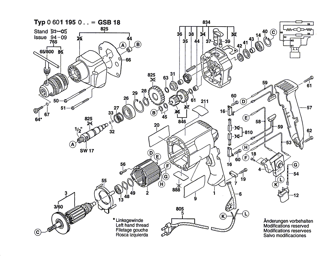 Zeichnungen von Bosch Schlagbohrmaschine GSB 18 mit der Geräte-Artikelnummer 0 601 195 003