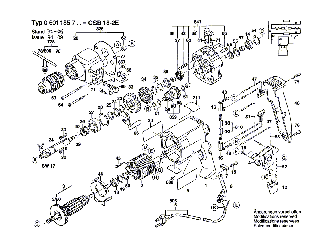 Zeichnungen von Bosch Schlagbohrmaschine GSB 18-2 E mit der Geräte-Artikelnummer 0 601 185 703