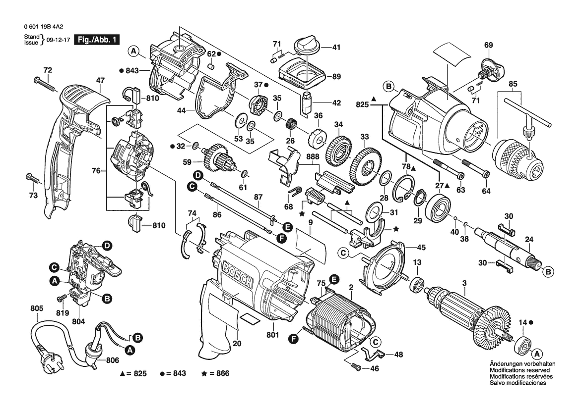 Zeichnung Sollten Sie Fragen zu einem Ersatzteil vom Bosch Schlagbohrmaschine GSB 20 ARG BARE | 220 V | 017 - AR (0 601 19B 453) haben, können Sie uns gerne eine E-Mail (mit einem Foto vom Typenschild Ihres Gerätes) schreiben oder eine Ersatzteilanfrage stellen.