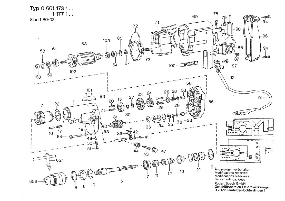 Folgende Ersatzteile für Bosch Schlagbohrmaschine Percussion Drill | 110 V | 036 - GB (0 601 173 141) können Sie hier bestellen: