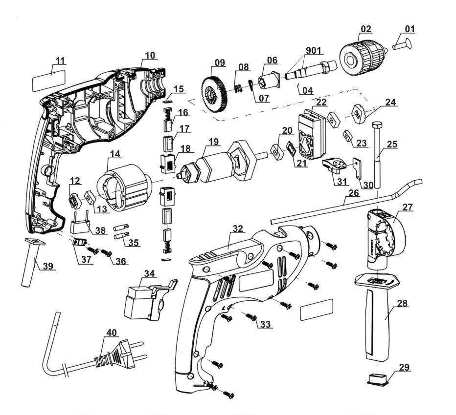 Ersatzteile für Einhell Classic Schlagbohrmaschine TC-ID 710 E, EX, BR, 127V ( 425972911018 )