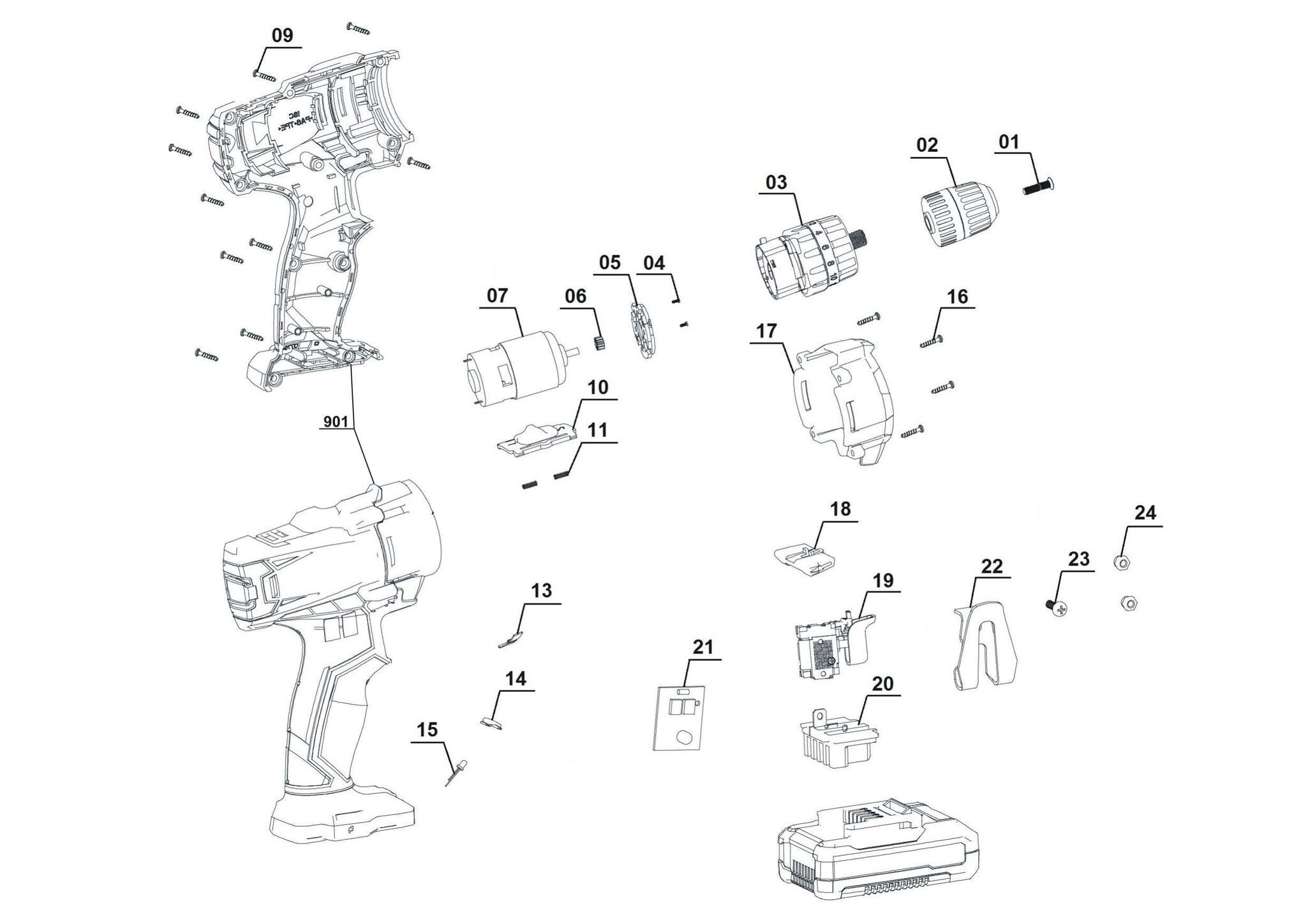 Folgende Ersatzteile für Einhell Expert Schlagbohrschrauber TE-CD 18/40 Li-i f. K., EX, UK ( 4513732 ) können Sie hier bestellen: