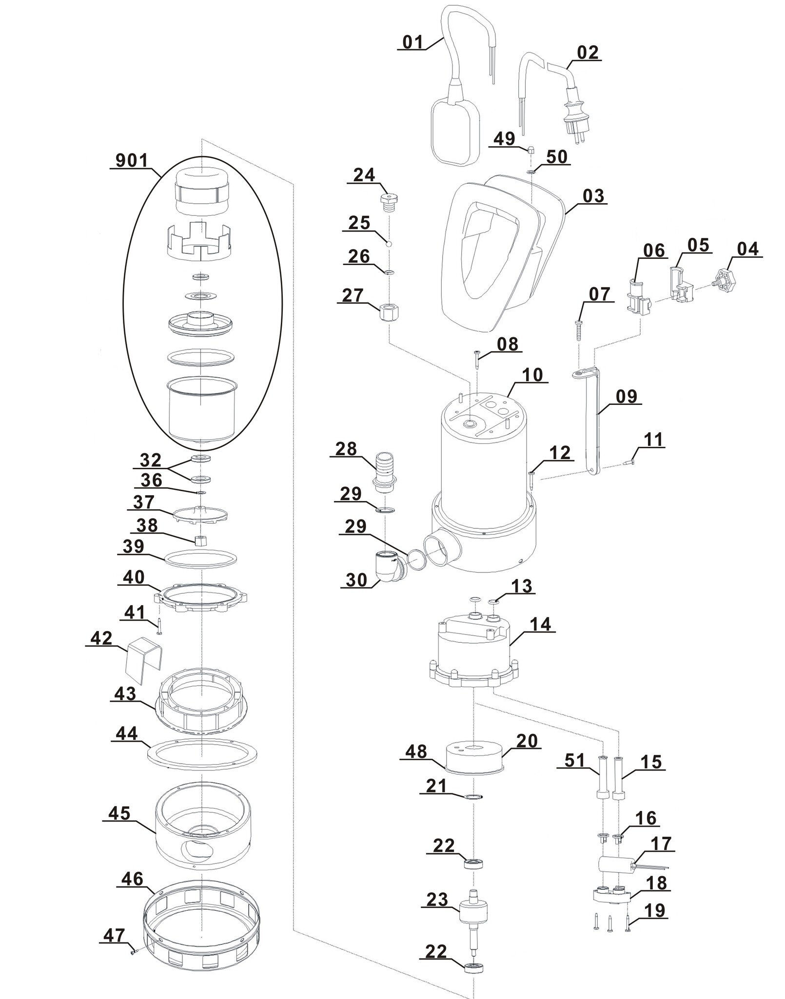 Ersatzteile für Neptun Schmutzwasserpumpe NPSP-E 18500 ( 4170673 11012 )