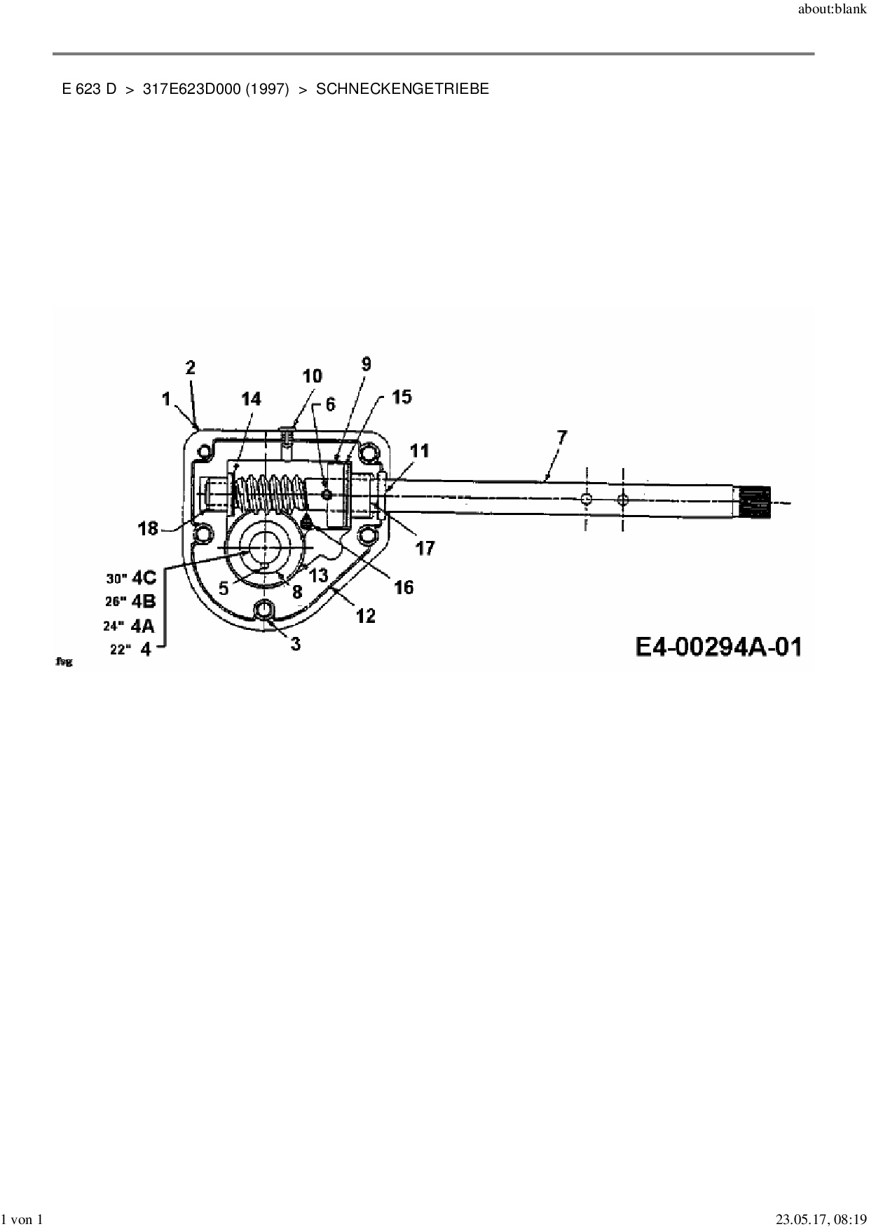 Ersatzteile für Schneefräsen Yard-Man E 623 D aus der Zeichnung Schneckengetriebe: