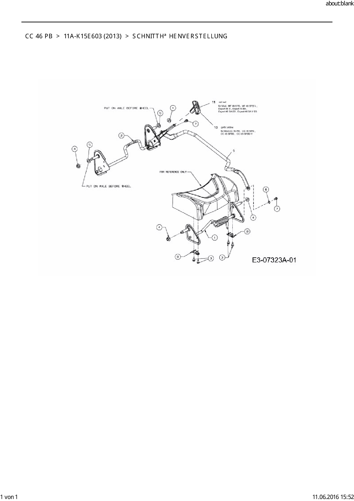 Ersatzteile für Motormäher Cub Cadet CC 46 PB aus der Zeichnung Schnitthöhenverstellung: