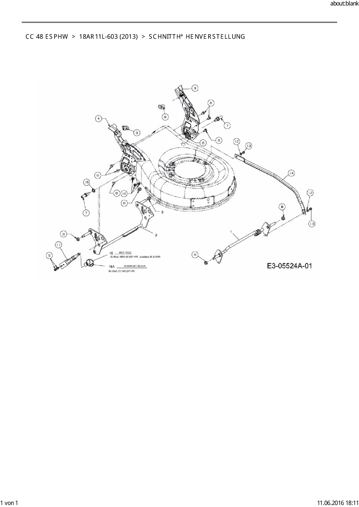 Ersatzteile für Elektromäher mit Antrieb Cub Cadet CC 48 ESPHW aus der Zeichnung Schnitthöhenverstellung: