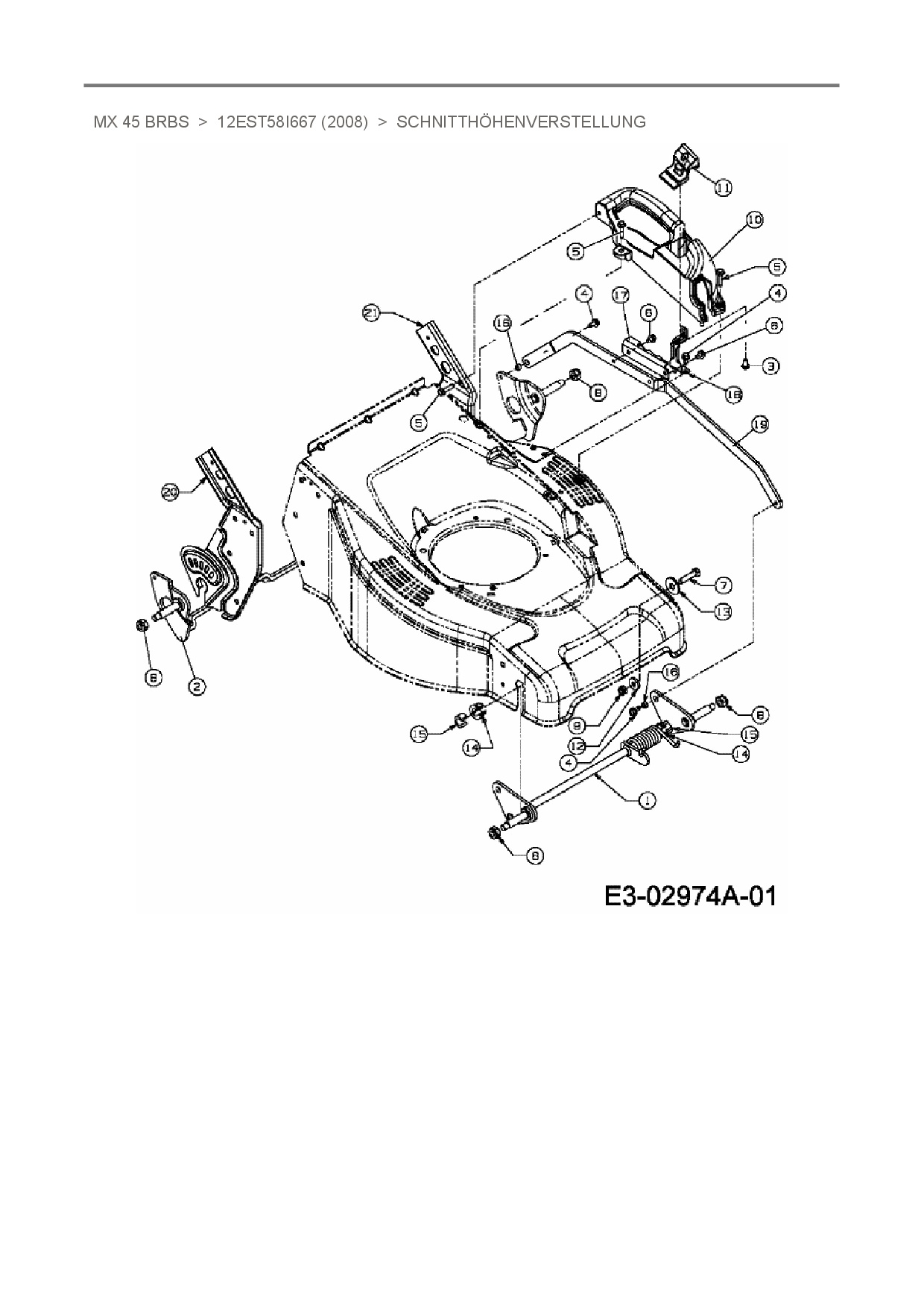 Ersatzteile für Motormäher mit Antrieb Merox MX 45 BRBS aus der Zeichnung Schnitthöhenverstellung: