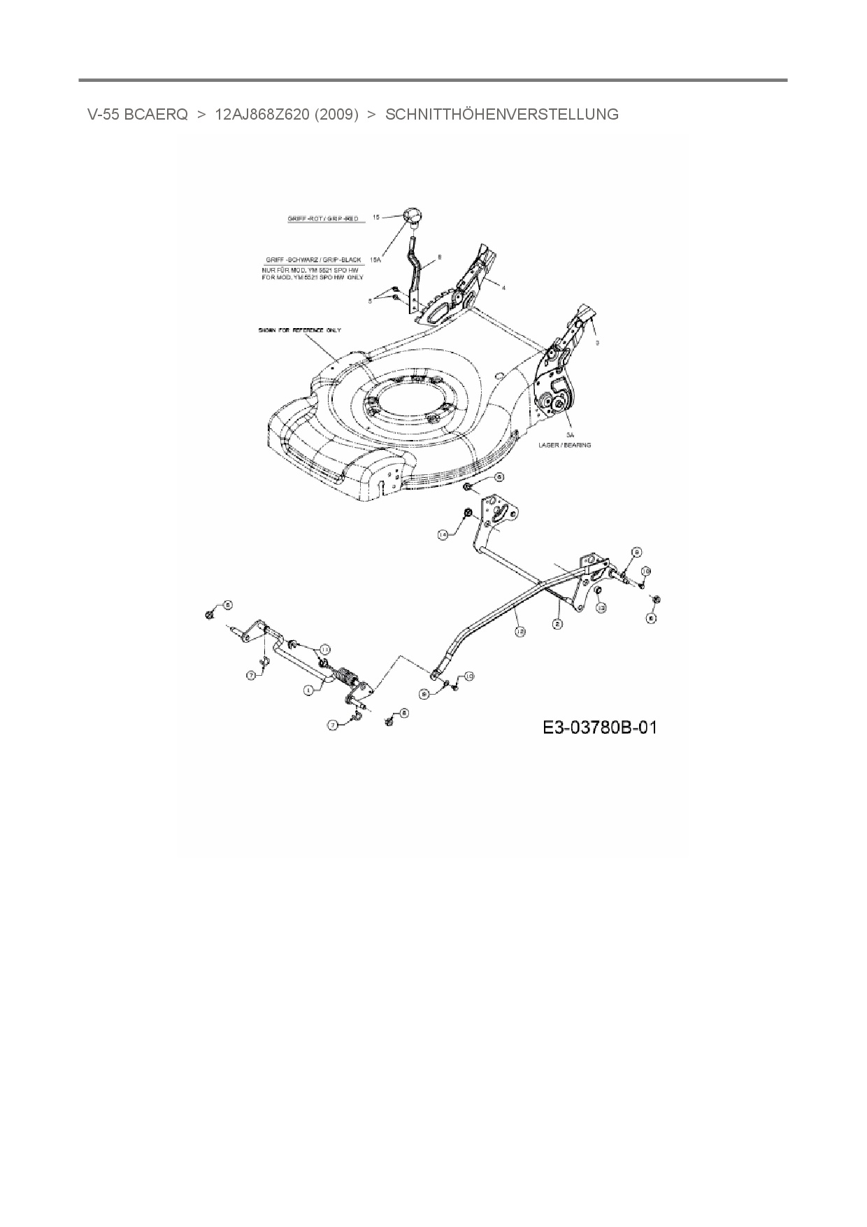 Zeichnung für Variolux Motormäher mit Antrieb V-55 BCAERQ mit der Geräte-Artikelnr. 12AJ868Z620 ab Baujahr 2009: