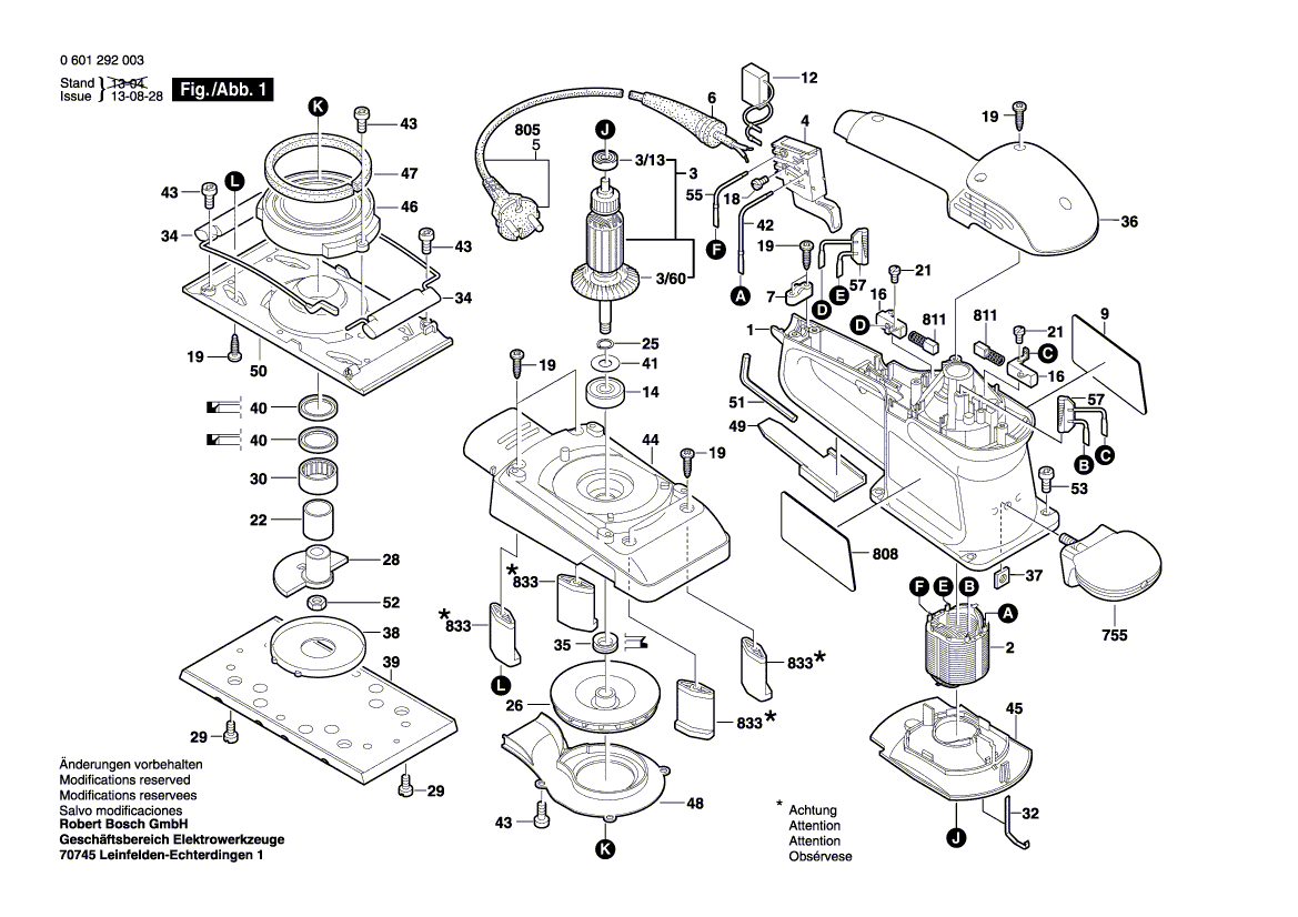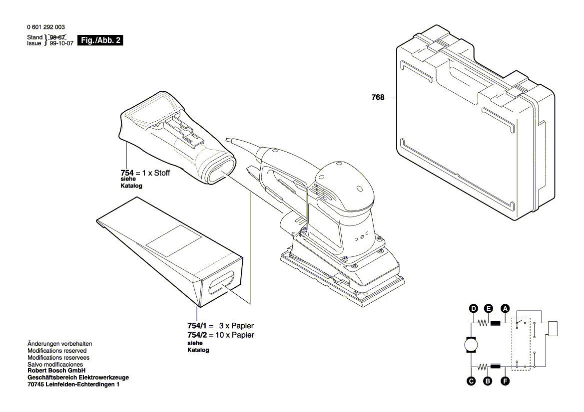 Beachten Sie bitte, dass Ihre Geräte Nr. 0 601 292 003 lauten muss. Nur so kann sichergestellt werden, dass das Ersatzteil passt. Sollten Sie Fragen zu einem Ersatzteil haben, können Sie uns gerne eine Mail (mit Bild vom Geräte-Typenschild) schreiben oder eine Ersatzteilanfrage stellen. Ersatzteile von Bosch Schwingschleifer GSS 230 A (0 601 292 003):