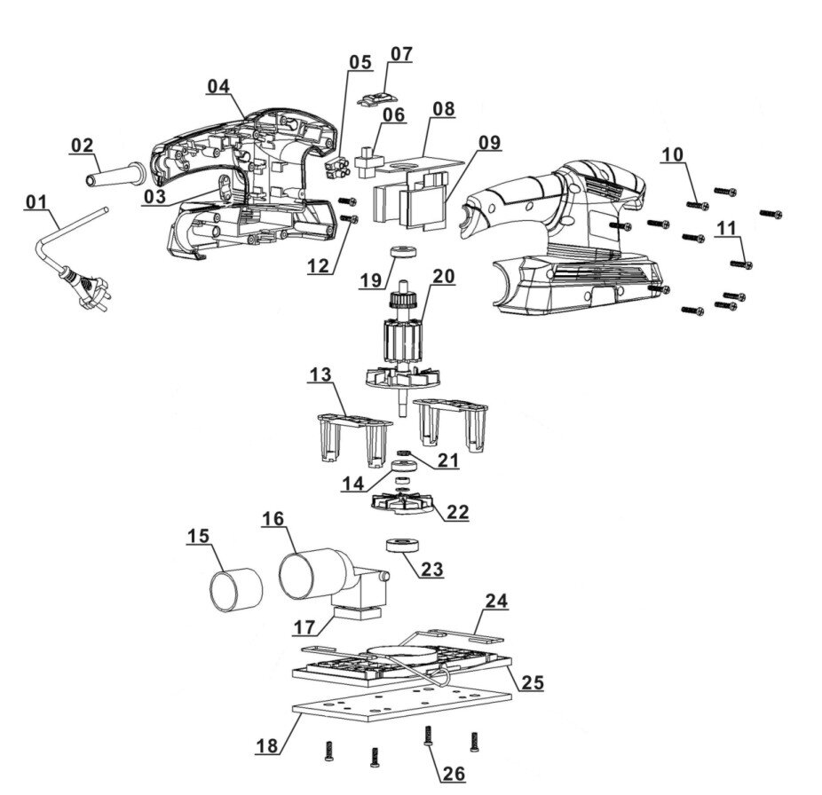 Zeichnung Sollten Sie Fragen zu einem Ersatzteil vom Robust Schwingschleifer RB-OS 150, EX, ARG ( 446053911012 ) haben, können Sie uns gerne eine E-Mail (mit einem Foto vom Typenschild Ihres Gerätes) schreiben oder eine Ersatzteilanfrage stellen.