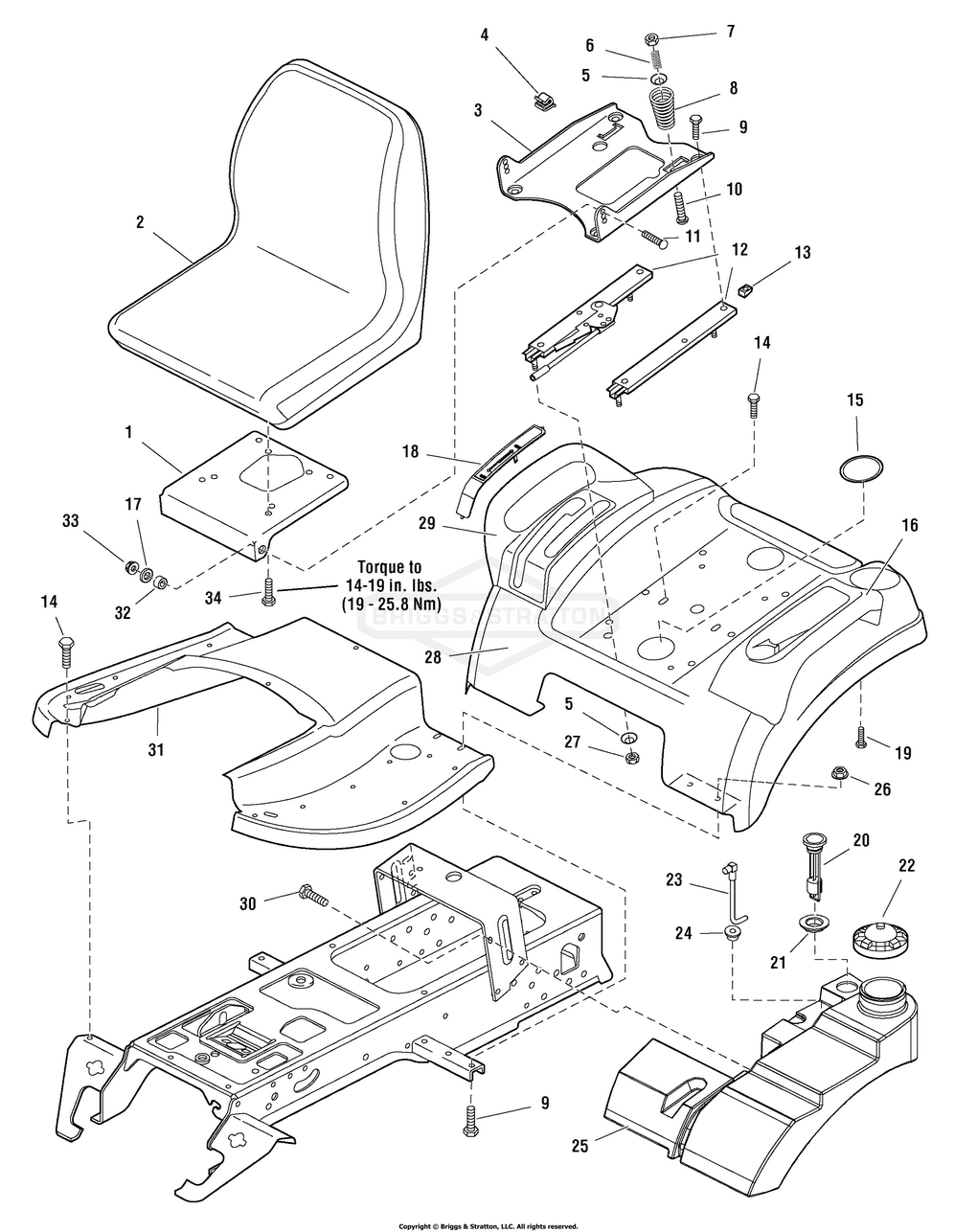 Zeichnung Snapper 2690073 - YT1840, 40" 18 HP Hydro Drive Rear Discharge Tractor aus der Zeichnungsgruppe Seat Deck & Fuel Tank Group:
