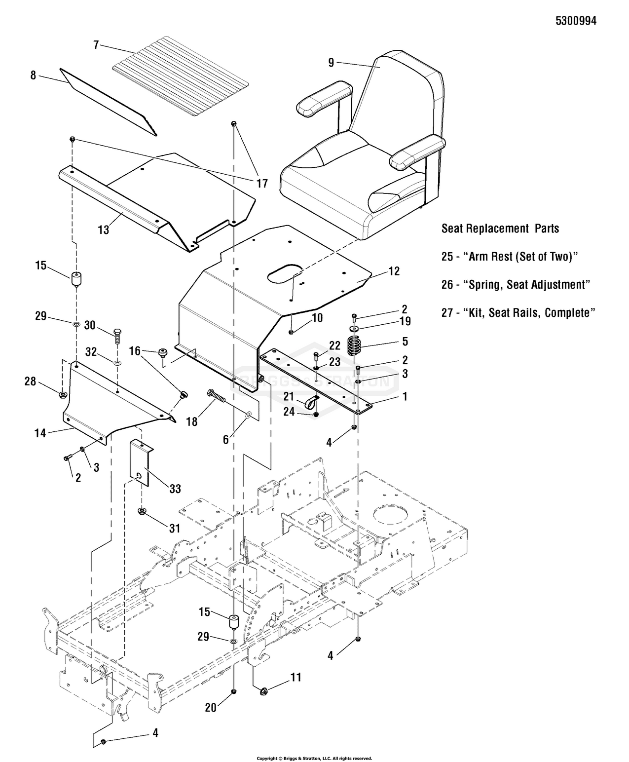 Zeichnung Snapper 5900775 - 355ZB2446, 46" ZTR 355Z Series - Zeichnungsgruppe Seat & Floor Plate Group: