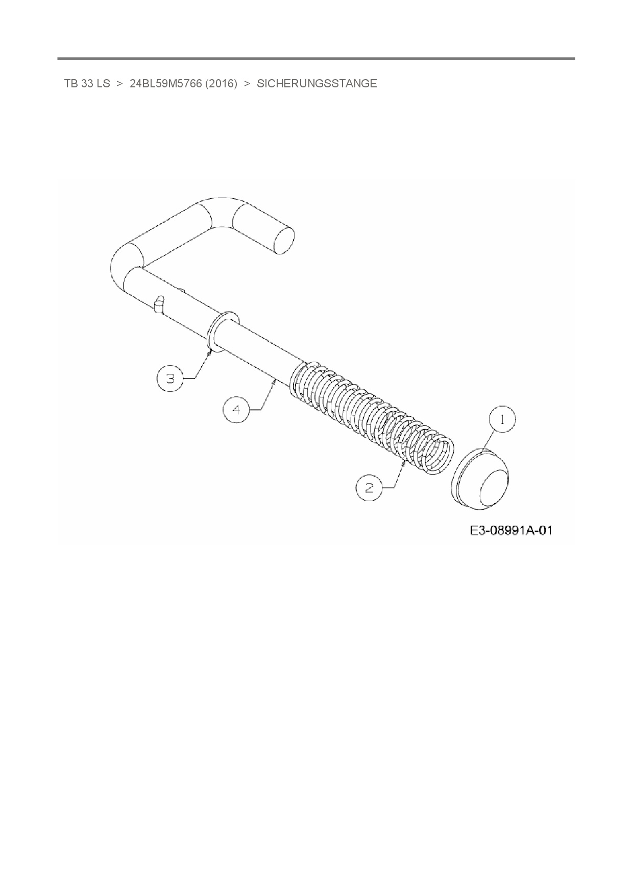 Ersatzteile für Holzspalter Troy-Bilt TB 33 LS aus der Zeichnung Sicherungsstange: