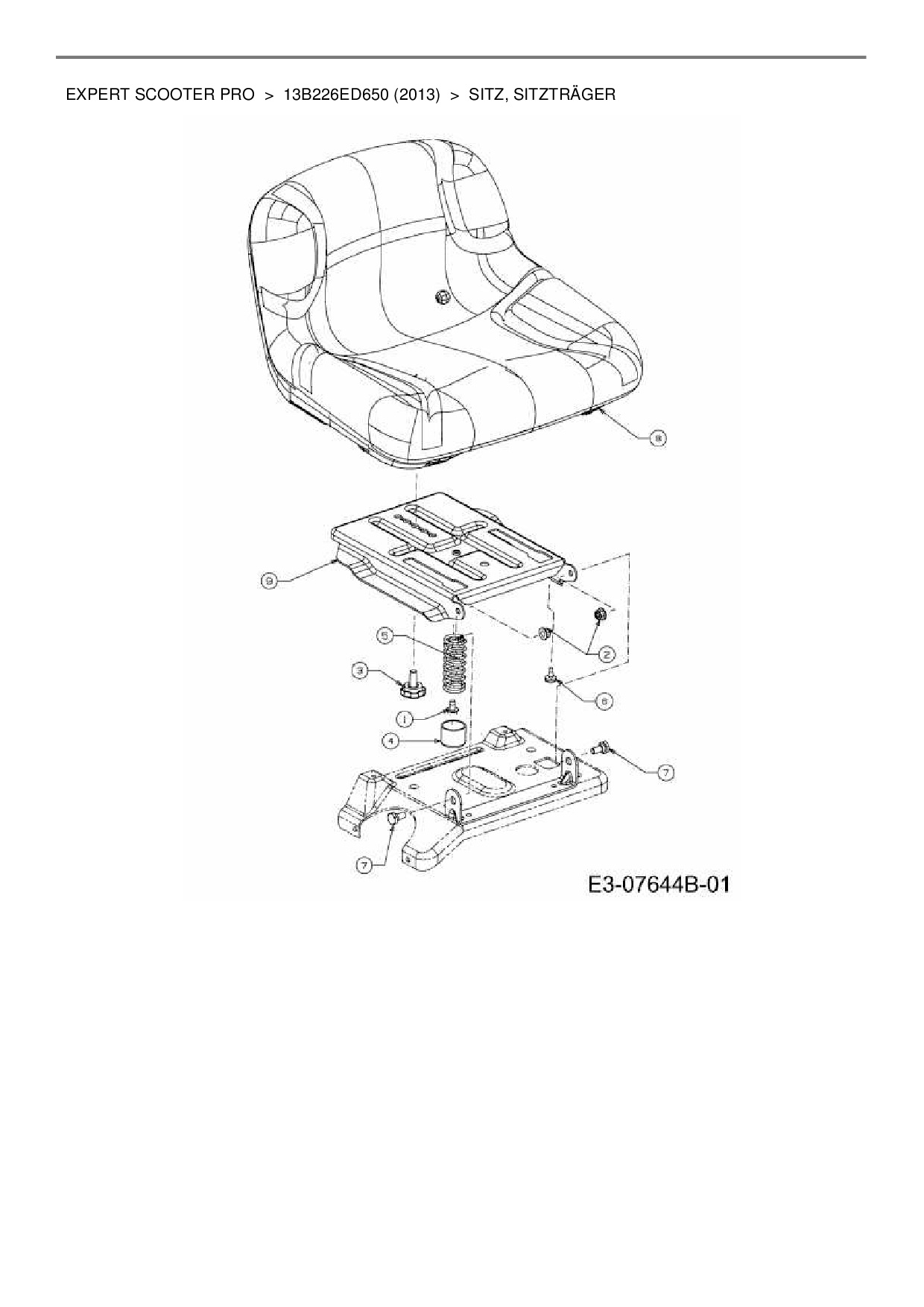 Ersatzteile für Rasentraktor Wolf-Garten Expert Expert Scooter Pro aus der Zeichnung Sitz, Sitzträger: