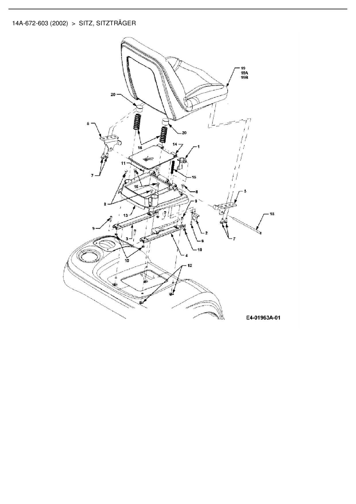 Ersatzteile für Gartentraktor Cub Cadet HDS 3235 aus der Zeichnung Sitz, Sitzträger: