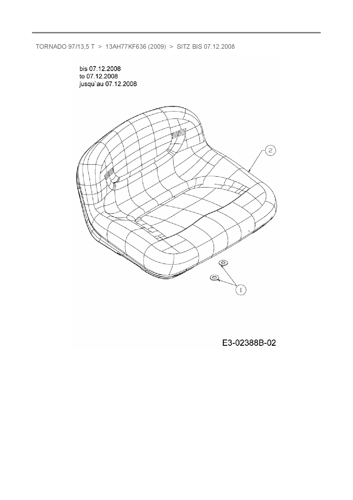 Ersatzteile für Rasentraktor Oleo-Mac Tornado 97/13,5 T aus der Zeichnung Sitz bis 07.12.2008: