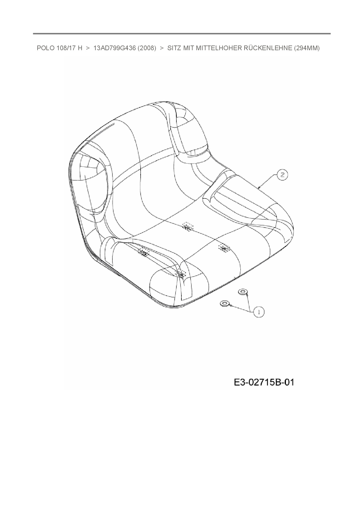 Download Ersatzteil-Zeichnung Oleo-Mac Polo 108/17 H Zeichnung Sitz mit mittelhoher Rückenlehne (294mm) (PDF-Format)