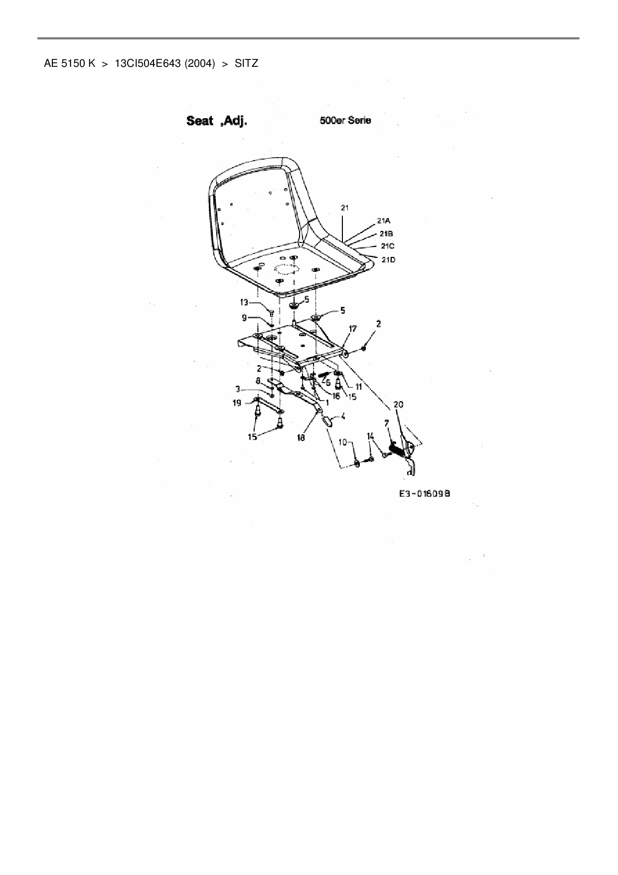 Ersatzteile für Rasentraktor Yard-Man AE 5150 K aus der Zeichnung Sitz: