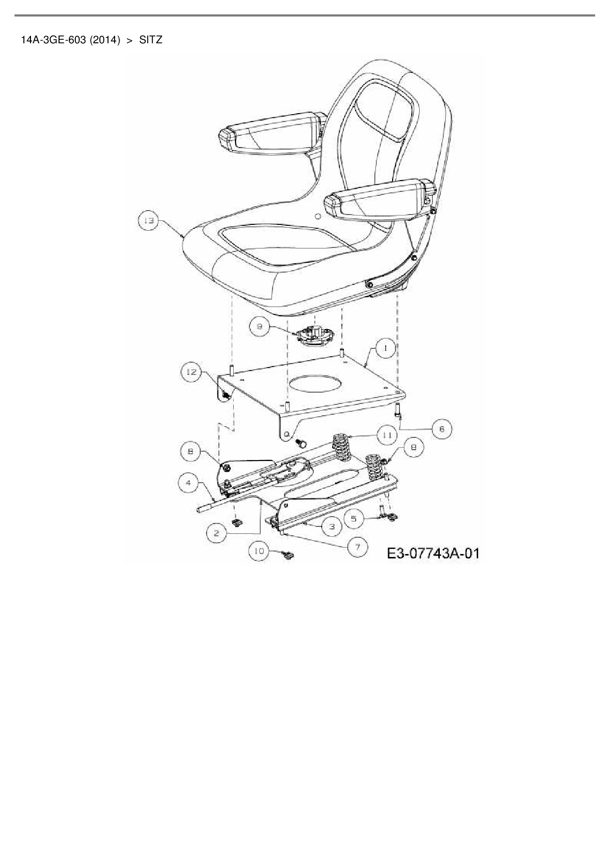Ersatzteile für Gartentraktor Cub Cadet GTX 2100 aus der Zeichnung Sitz: