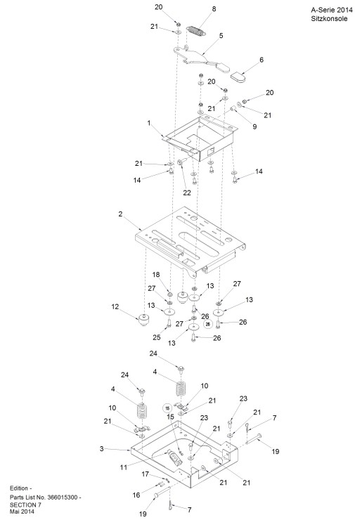 Zeichnung von ECHO-Motorgeräte Rasentraktoren A-Serie A-416KAWA-4WD - E1100104 Sitzkonsole: