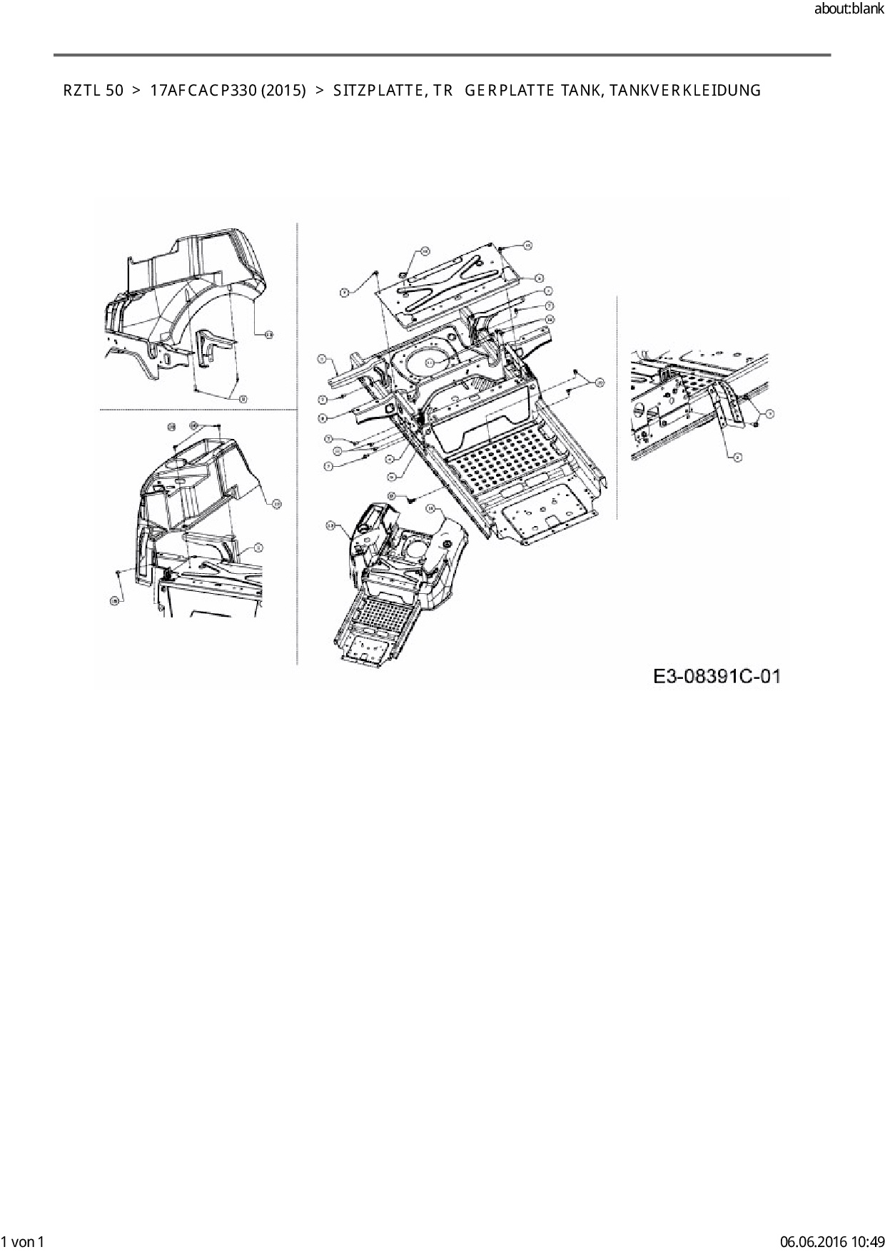 Ersatzteile für Zero Turn Cub Cadet RZTL 50 aus der Zeichnung Sitzplatte, Trägerplatte Tank, Tankverkleidung:
