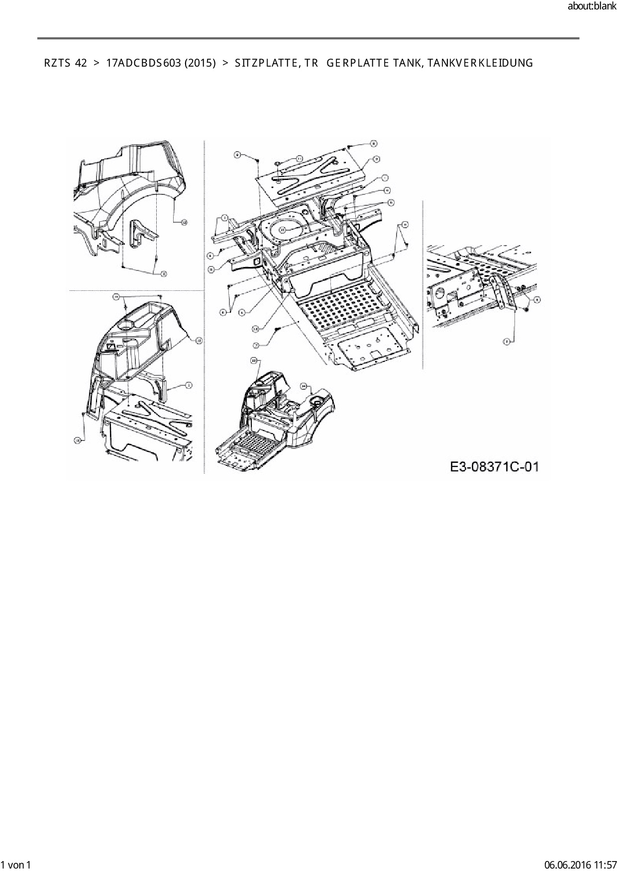 Ersatzteile für Zero Turn Cub Cadet RZTS 42 aus der Zeichnung Sitzplatte, Trägerplatte Tank, Tankverkleidung:
