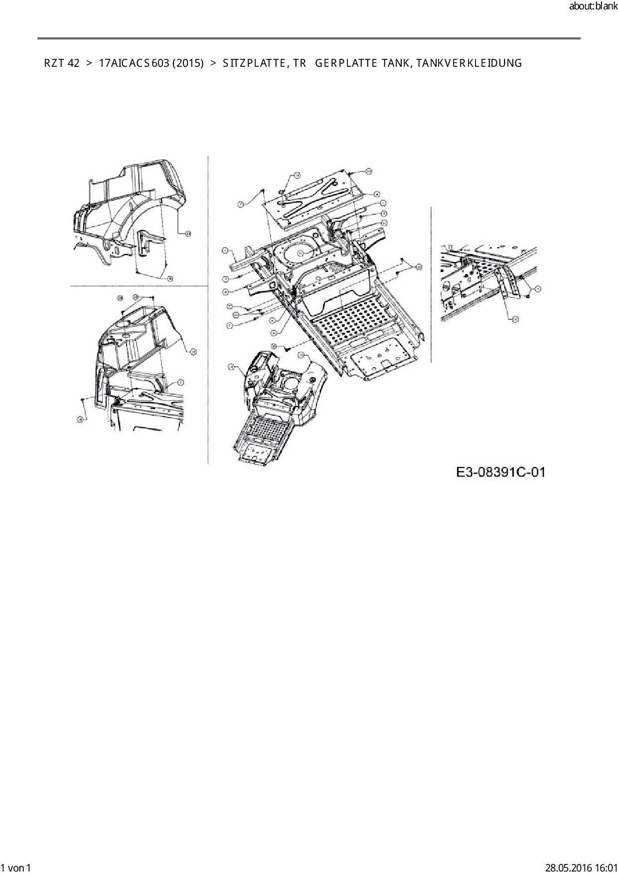 Ersatzteile für Zero Turn Cub Cadet RZT 42 aus der Zeichnung Sitzplatte, Trägerplatte Tank, Tankverkleidung: