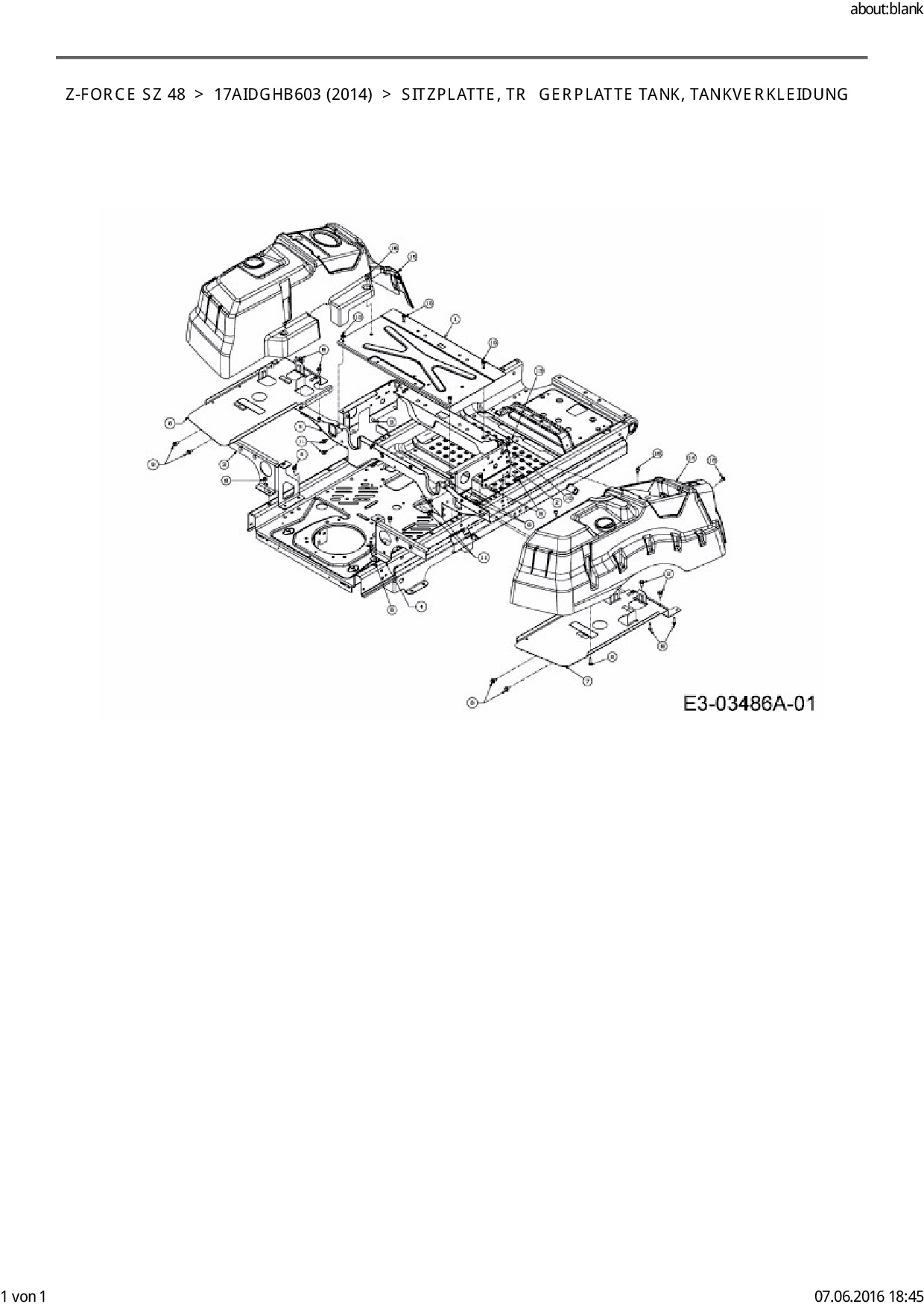 Ersatzteile für Zero Turn Cub Cadet Z-Force SZ 48 aus der Zeichnung Sitzplatte, Trägerplatte Tank, Tankverkleidung: