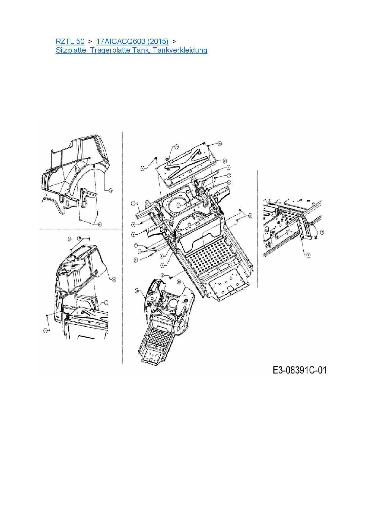Ersatzteile für Zero Turn Cub Cadet RZTL 50 aus der Zeichnung Sitzplatte, Trägerplatte Tank, Tankverkleidung: