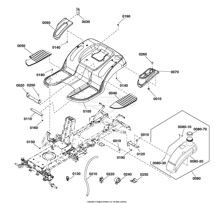 Hier finden Sie alle Ersatzteile von Murray Aufsitzmäher 2691717-00 - MRD310, 8270 107cm Murray Rear Discharge Lawn Tractor (CE/Export) (2020) der Zeichnungsgruppe Sitzrahmen und Tank: