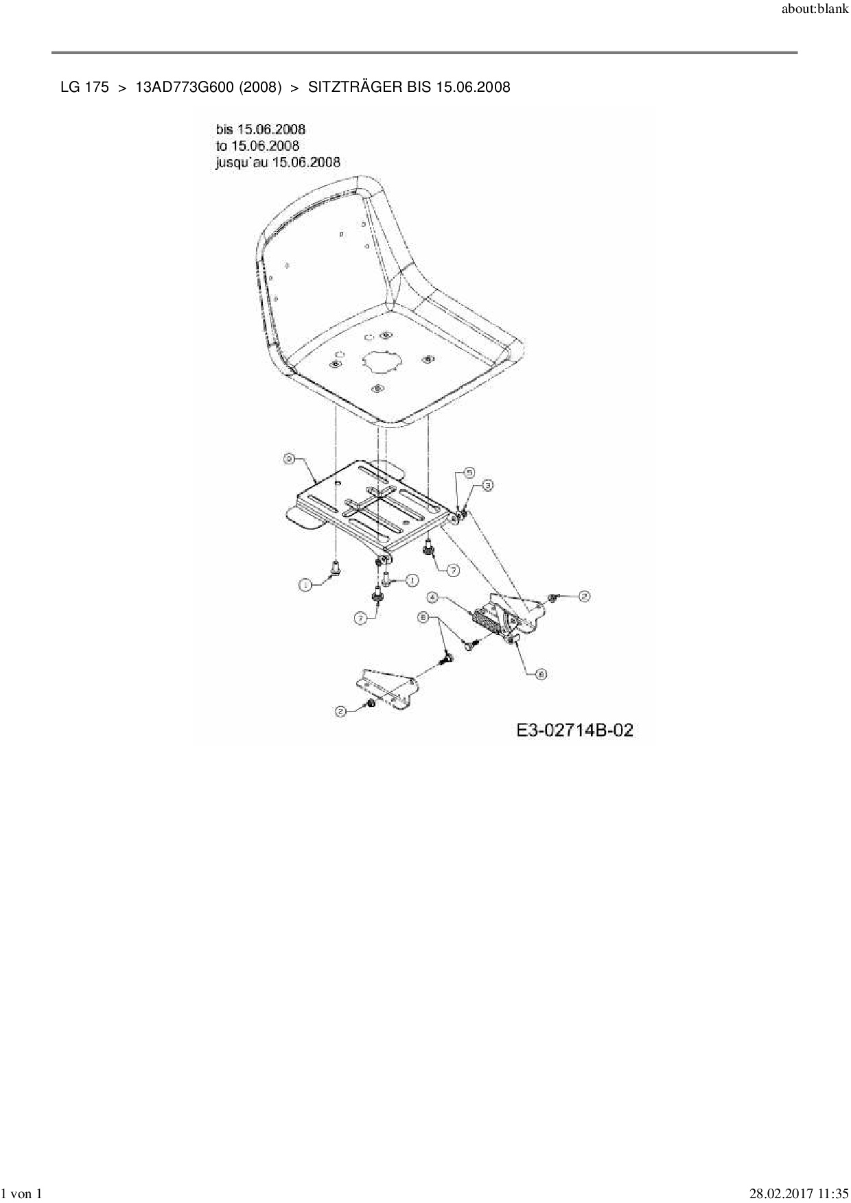 Ersatzteile für Rasentraktor MTD LG 175 aus der Zeichnung Sitzträger bis 15.06.2008: