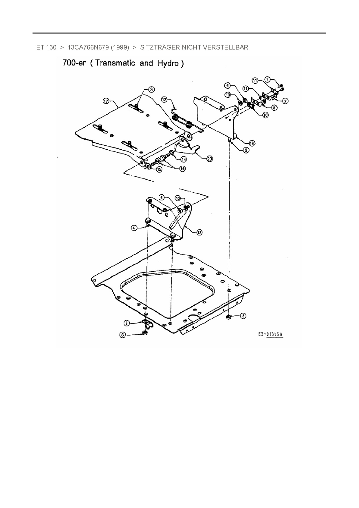 Ersatzteile für Rasentraktor White ET 130 aus der Zeichnung Sitzträger nicht verstellbar: