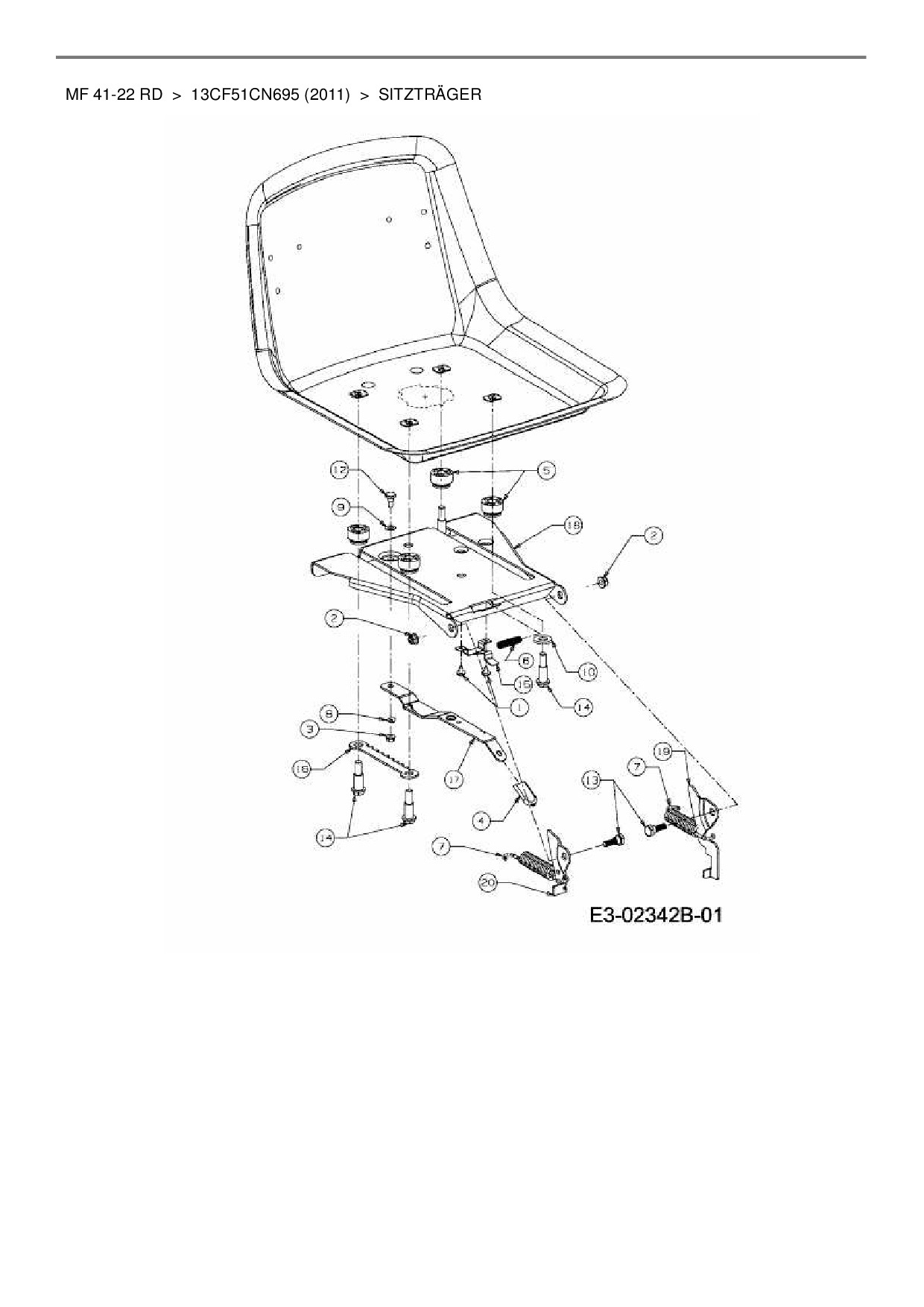 Ersatzteile für Rasentraktor Massey Ferguson MF 41-22 RD aus der Zeichnung Sitzträger: