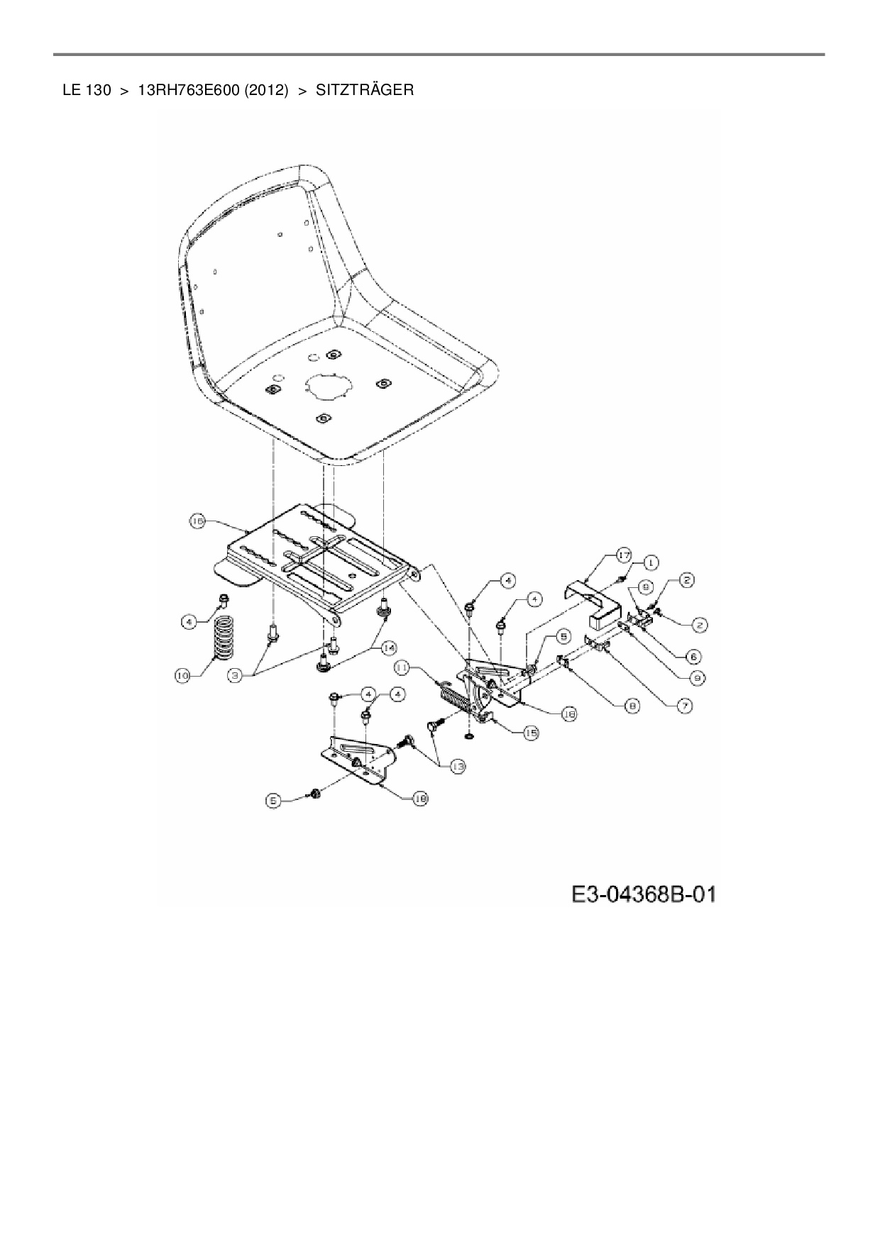 Ersatzteile für Rasentraktor MTD LE 130 aus der Zeichnung Sitzträger: