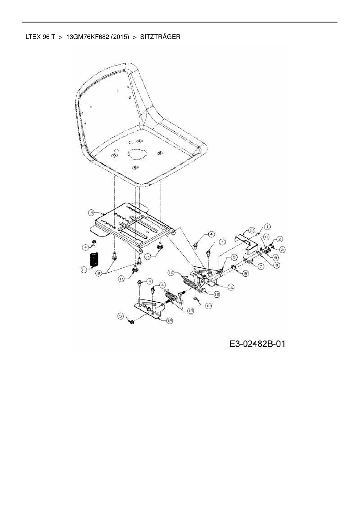 Ersatzteile für Rasentraktor MTD LTEX 96 T aus der Zeichnung Sitzträger: