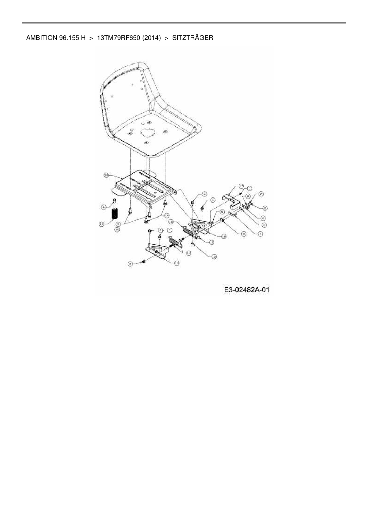 Ersatzteile für Rasentraktor Wolf-Garten Ambition 96.155 H aus der Zeichnung Sitzträger: