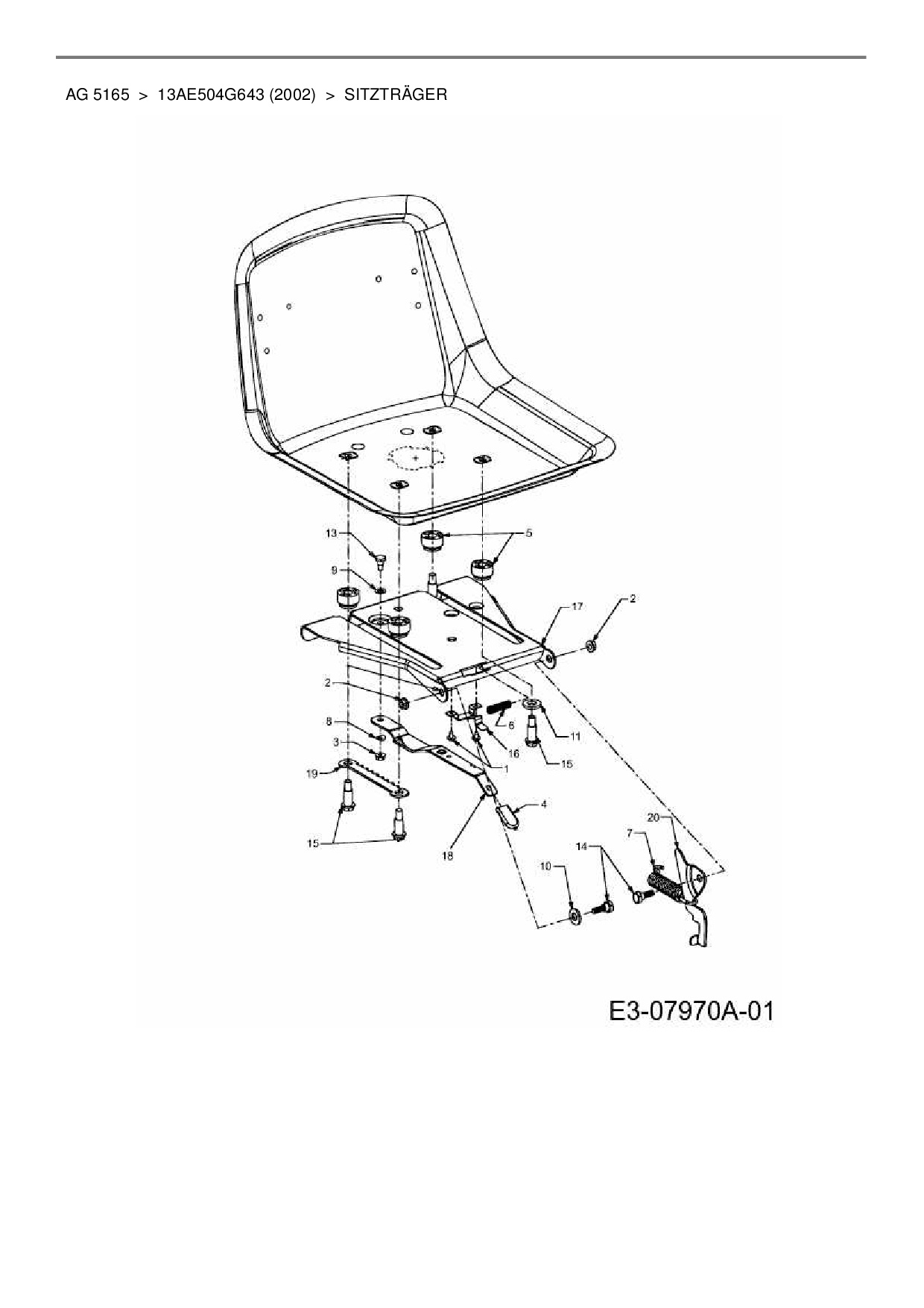 Ersatzteile für Rasentraktor Yard-Man AG 5165 aus der Zeichnung Sitzträger: