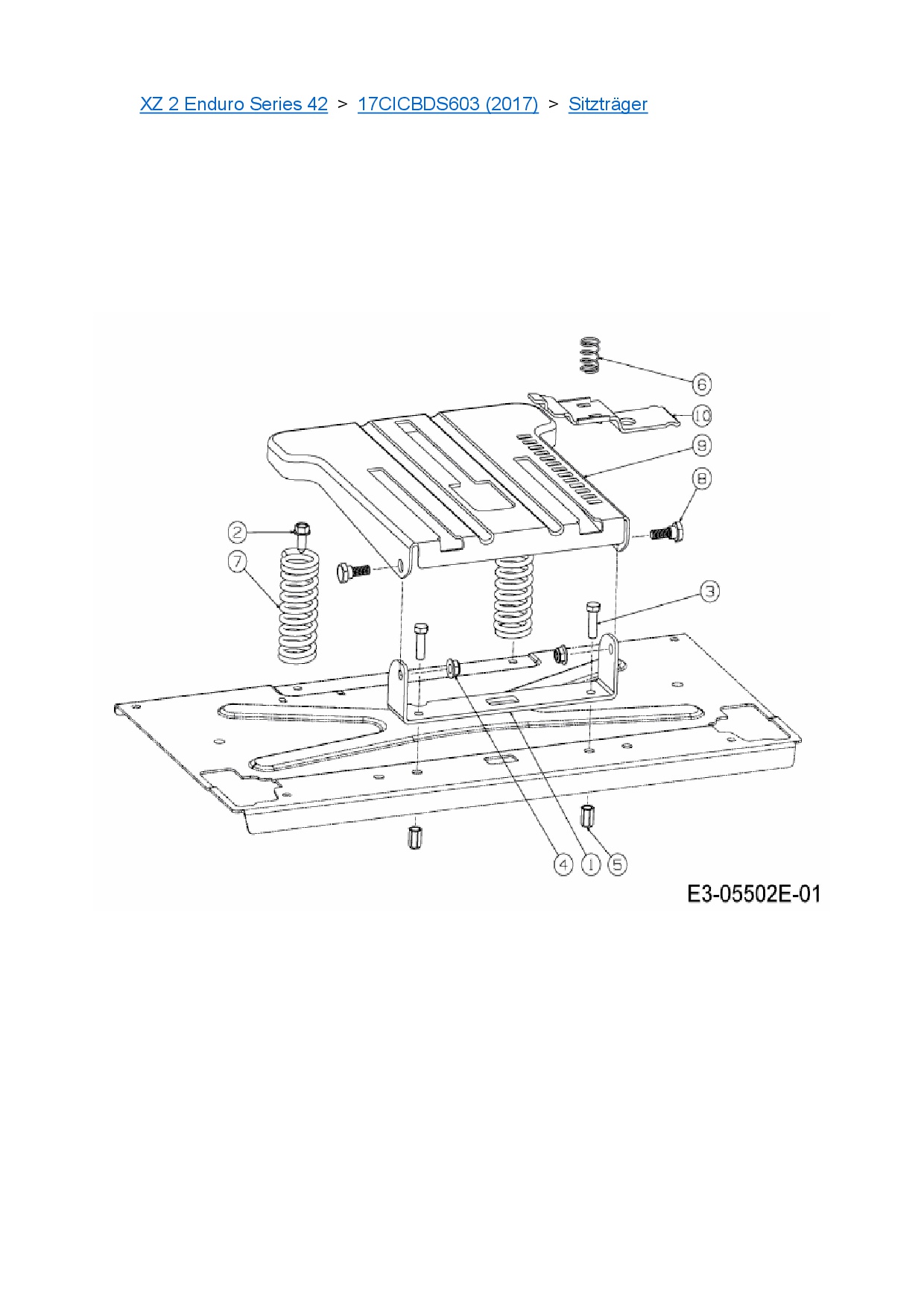 Ersatzteile für Zero Turn Cub Cadet XZ 2 Enduro Series 42 aus der Zeichnung Sitzträger: