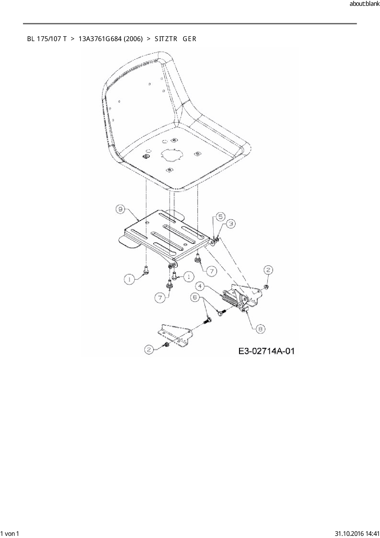 Ersatzteile für Rasentraktor Bolens BL 175/107 T aus der Zeichnung Sitzträger: