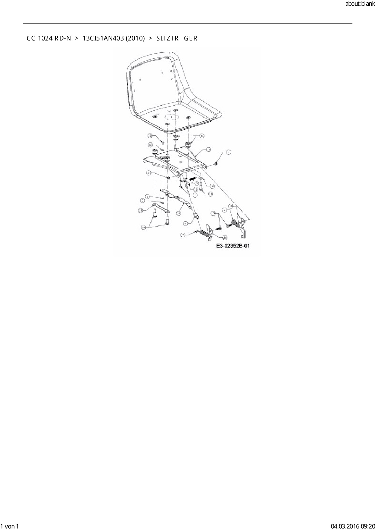 Ersatzteile für Rasentraktor Cub Cadet CC 1024 RD-N aus der Zeichnung Sitzträger: