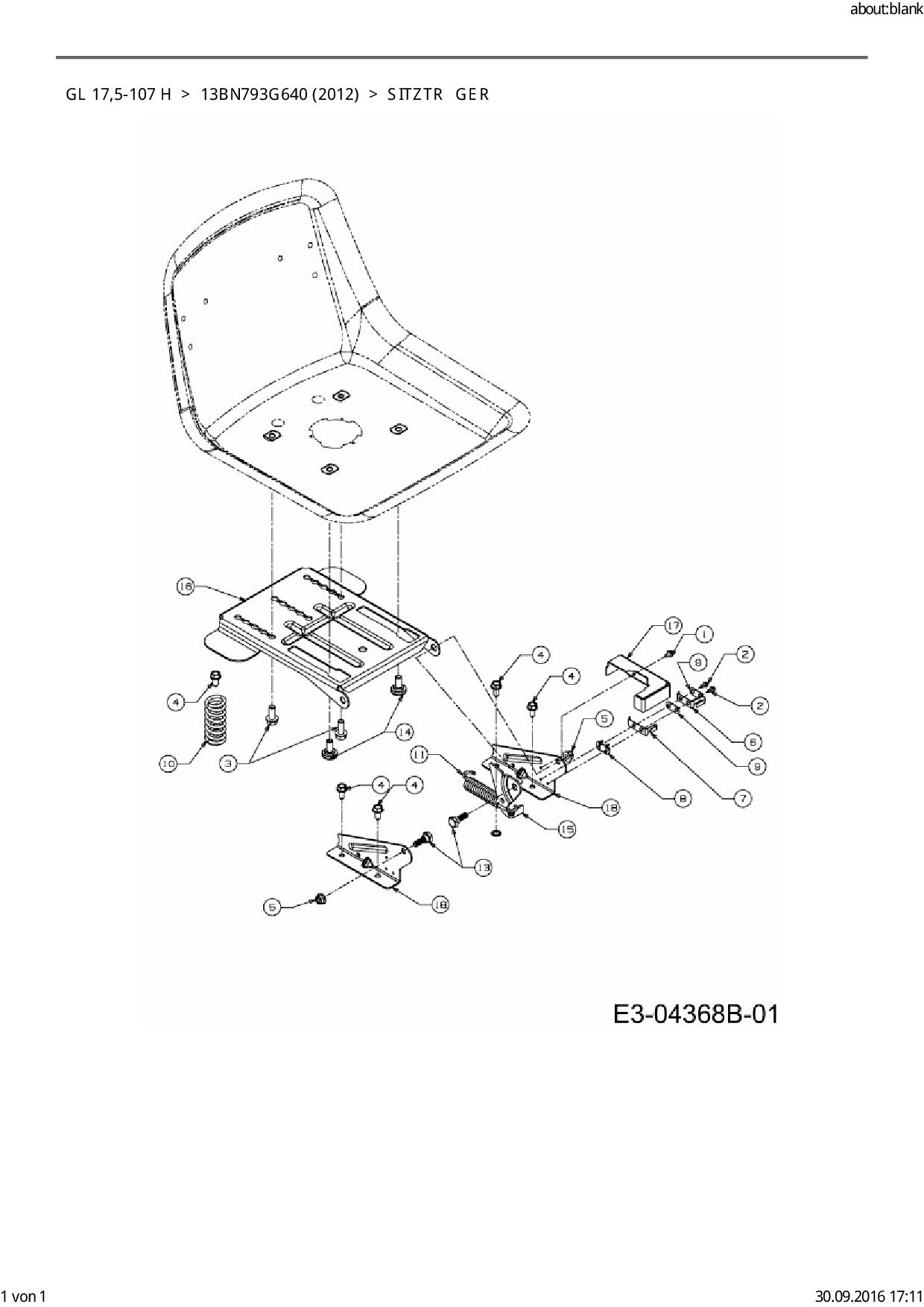Ersatzteile für Rasentraktor Gartenland GL 17,5-107 H aus der Zeichnung Sitzträger: