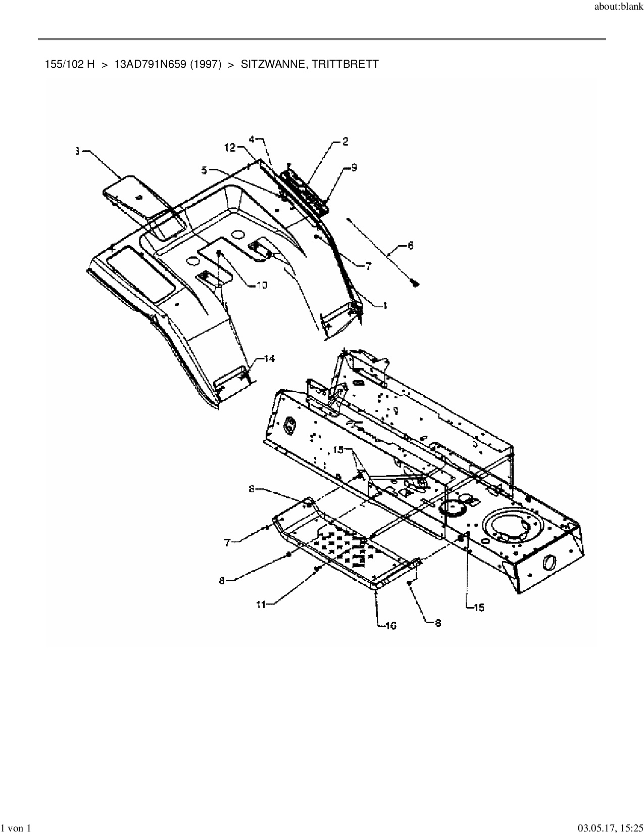 Ersatzteile für Rasentraktor Mastercut 155/102 H aus der Zeichnung Sitzwanne, Trittbrett: