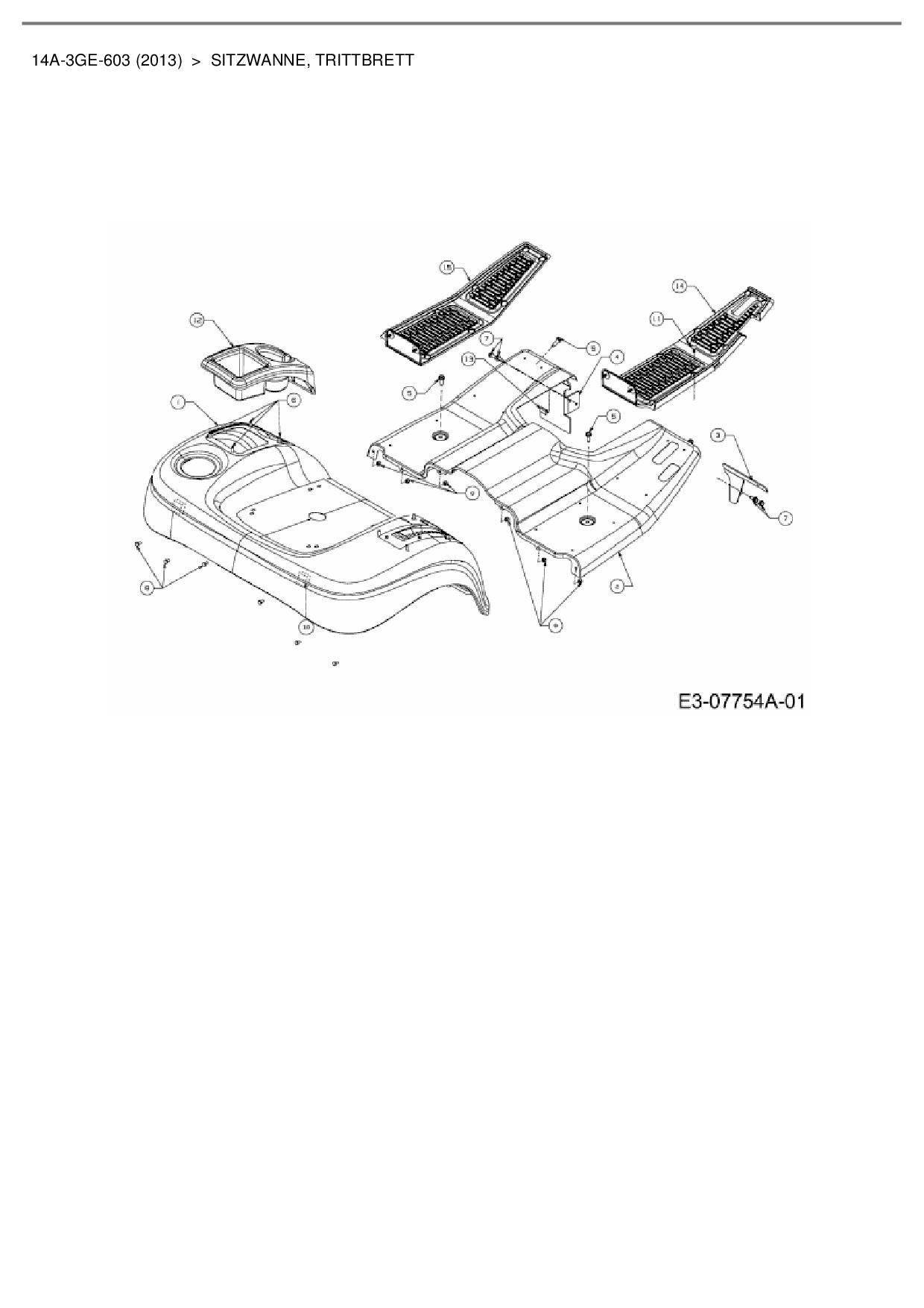 Ersatzteile für Gartentraktor Cub Cadet GTX 2100 aus der Zeichnung Sitzwanne, Trittbrett: